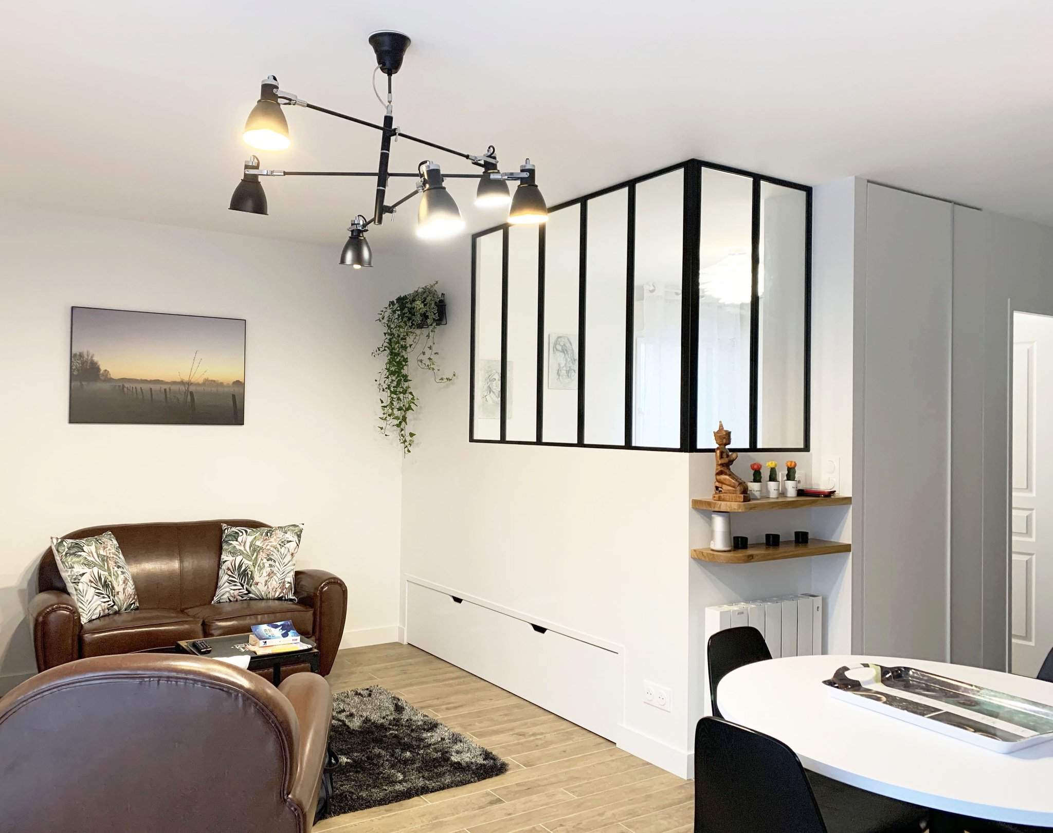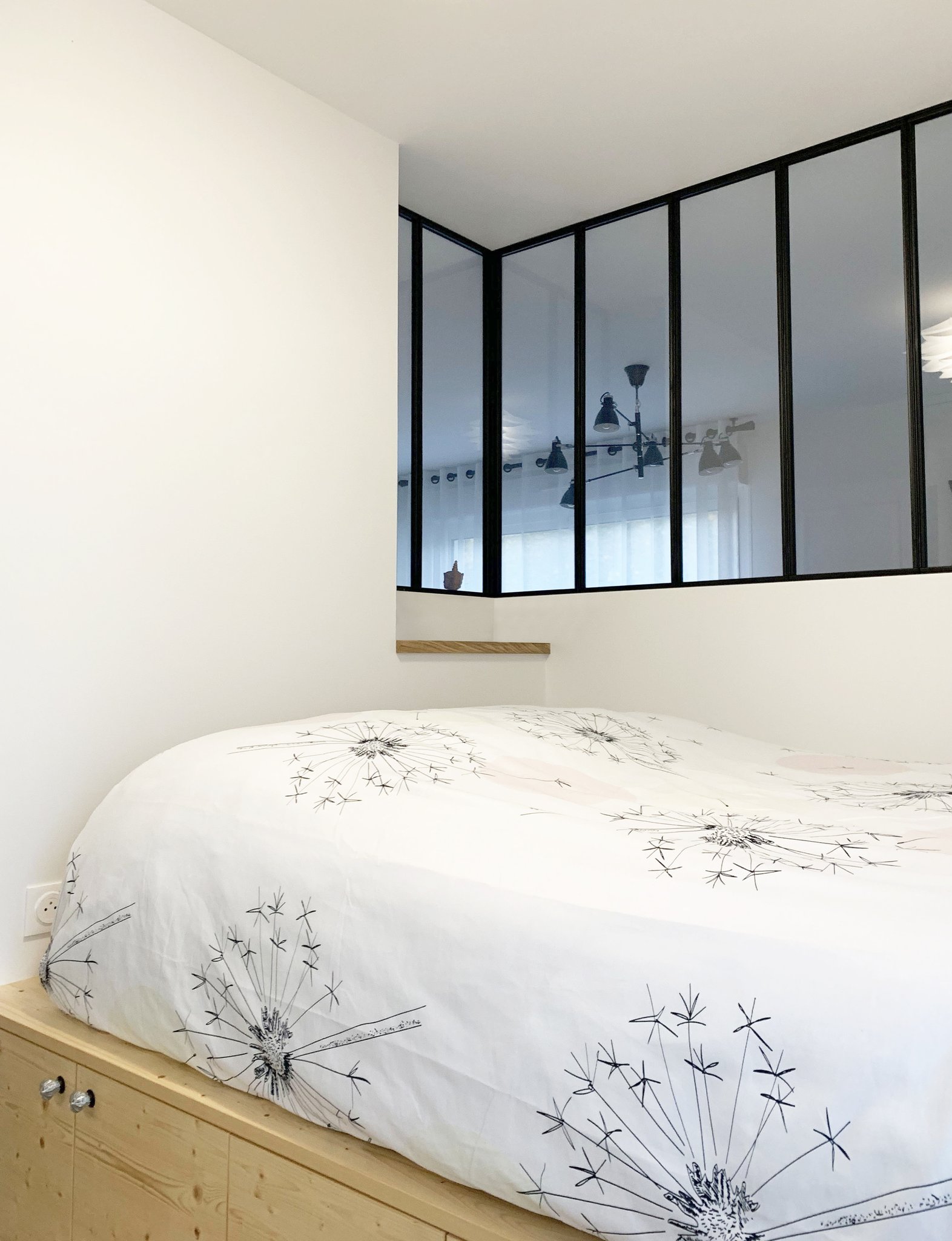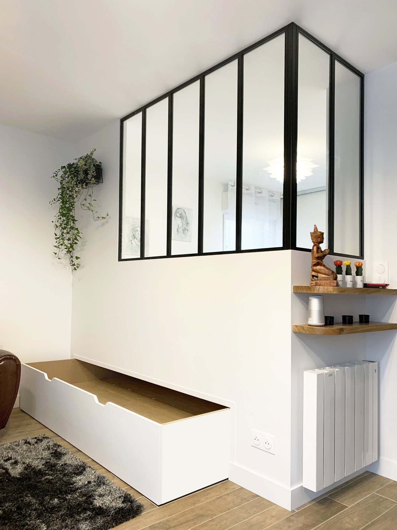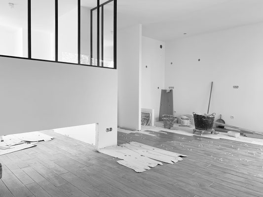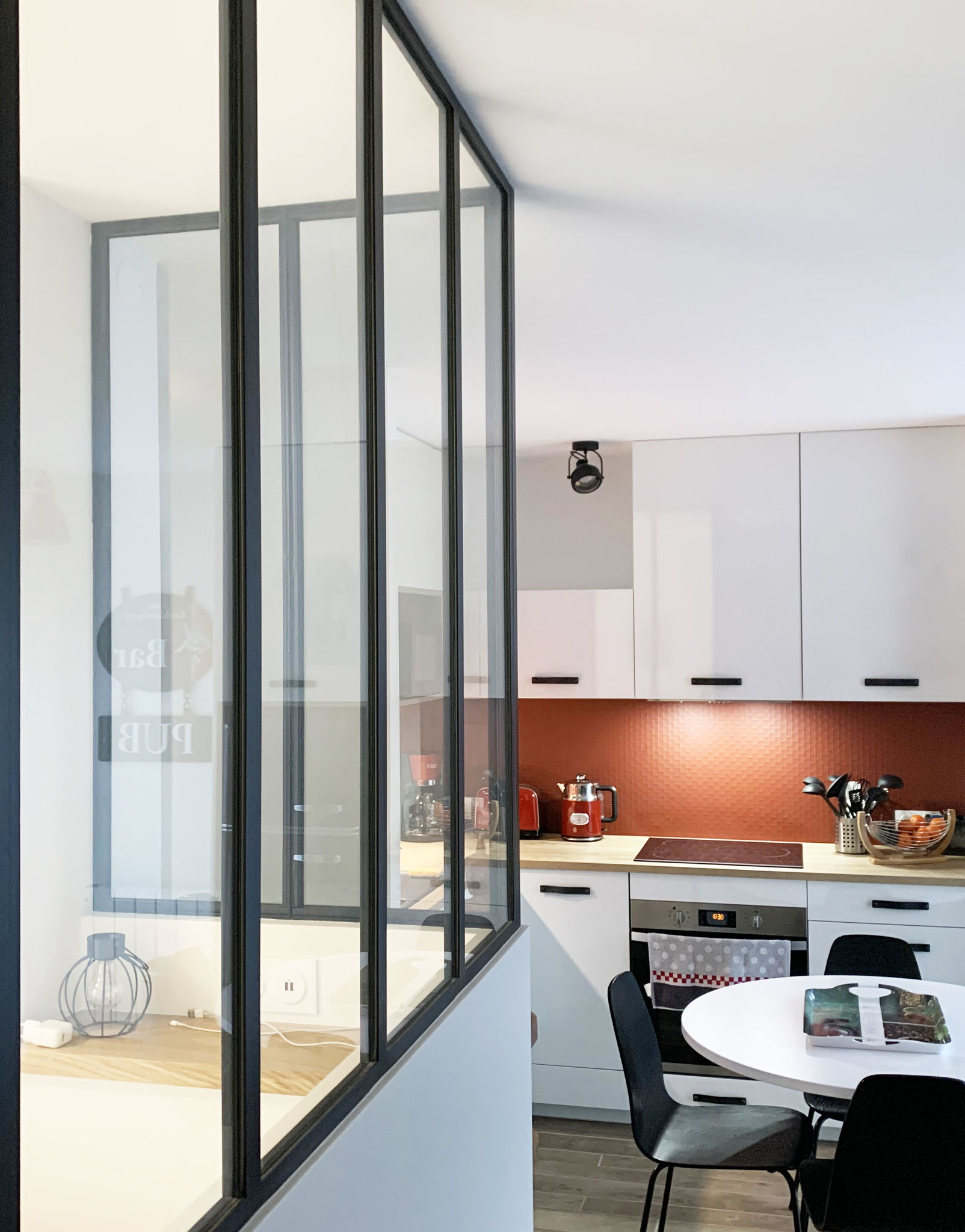 avec l'installation d'une verrière d'angle permettant de bénéficier de la lumière du séjour,