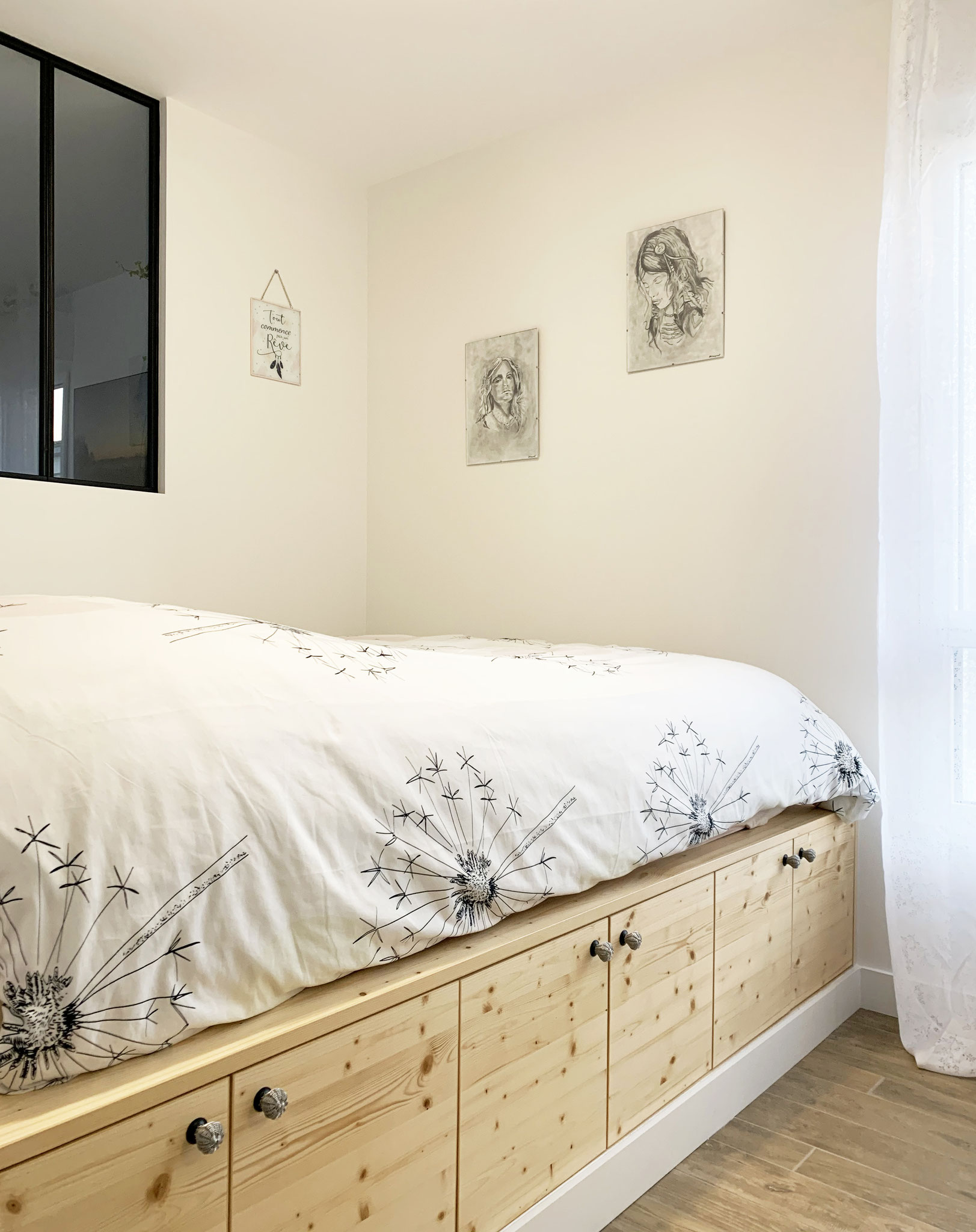 une optimisation générale des rangements, et la création d'un couchage d'appoint dans la pièce de vie.