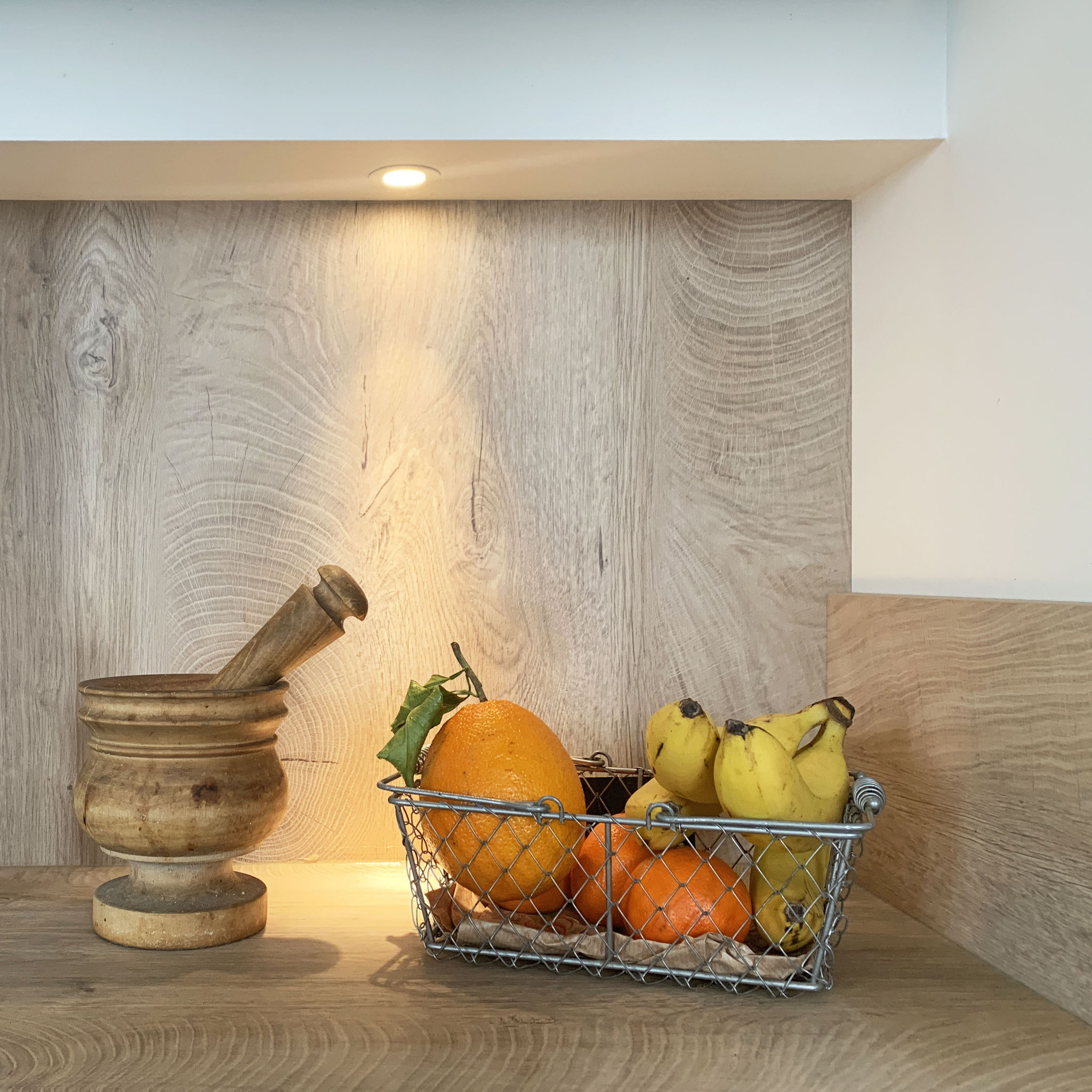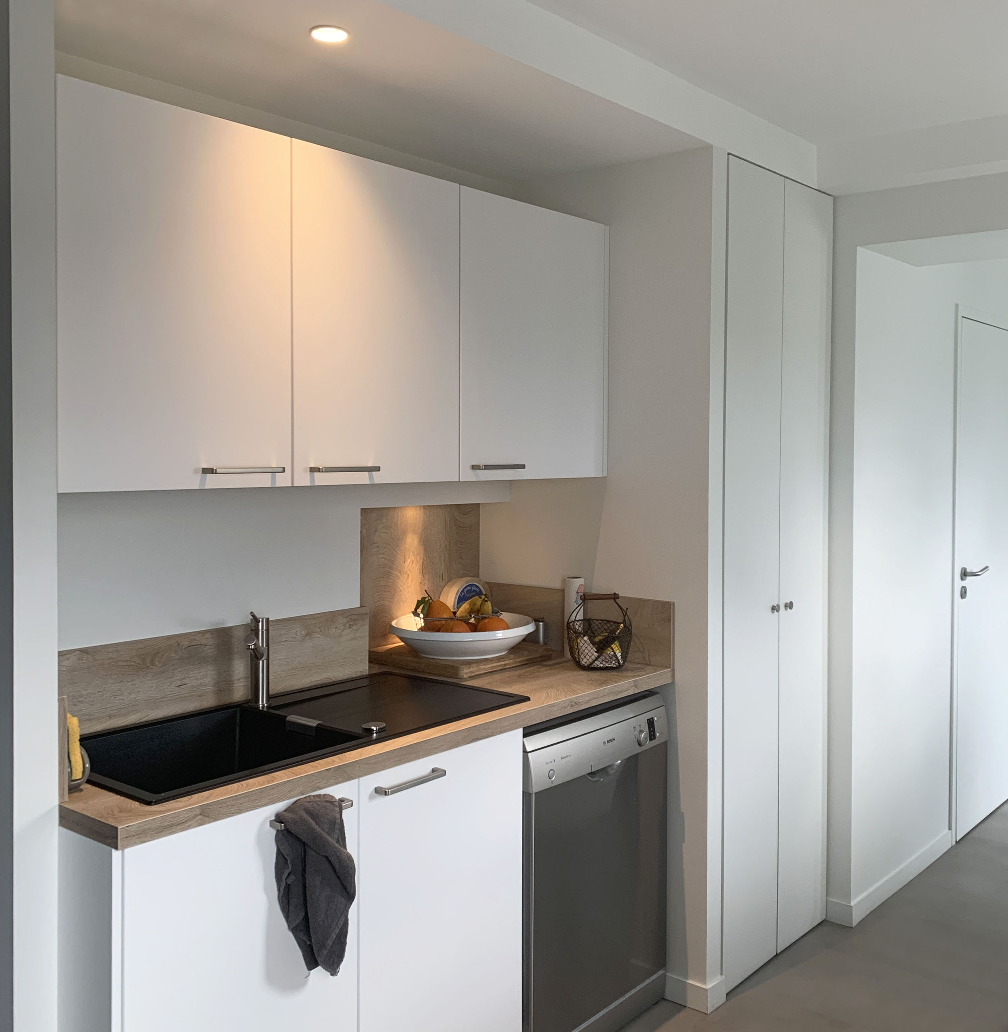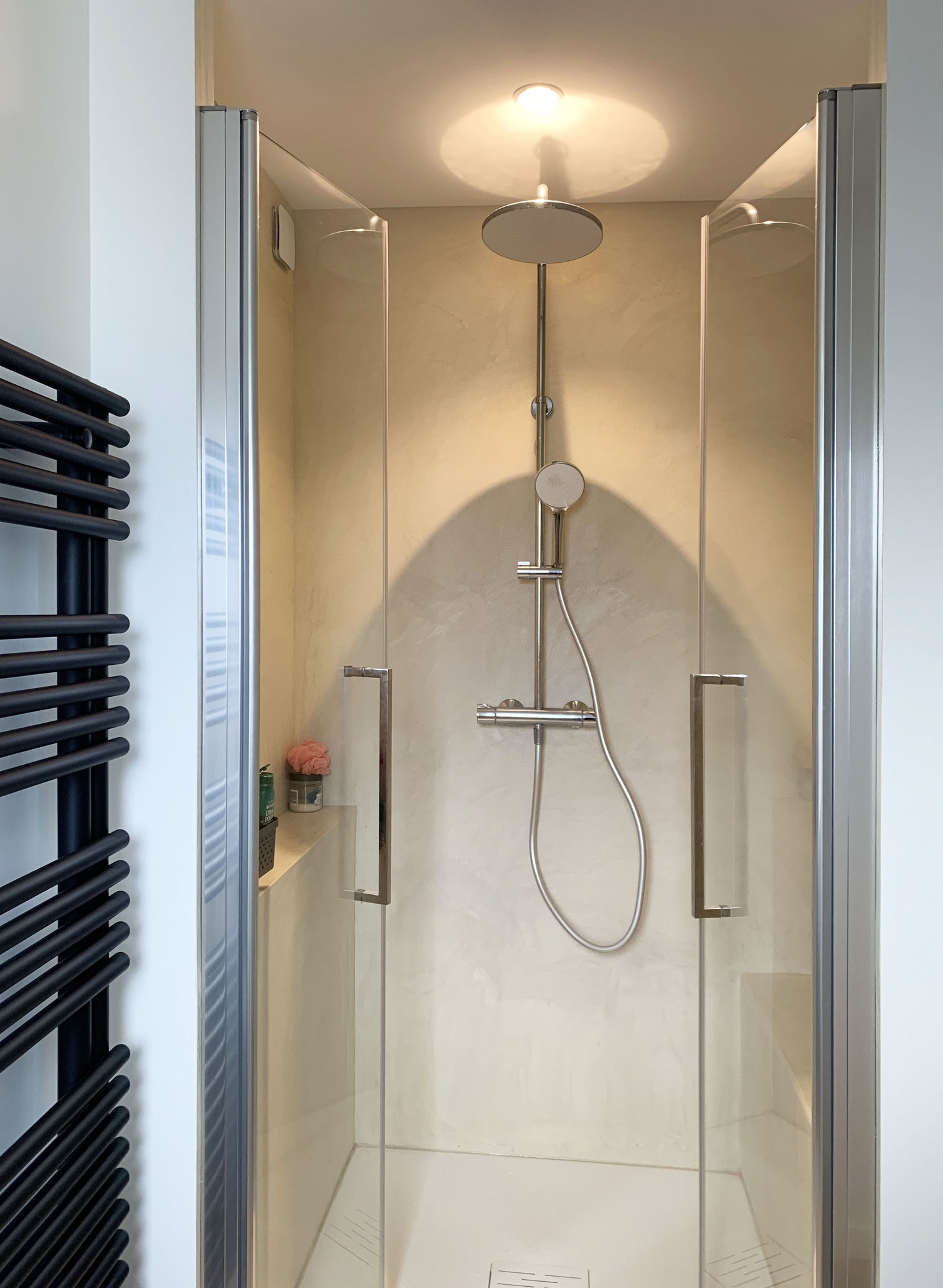 Les espaces existants sont permutés et entièrement réaménagés, pour créer une chambre parentale avec salle d'eau privative.