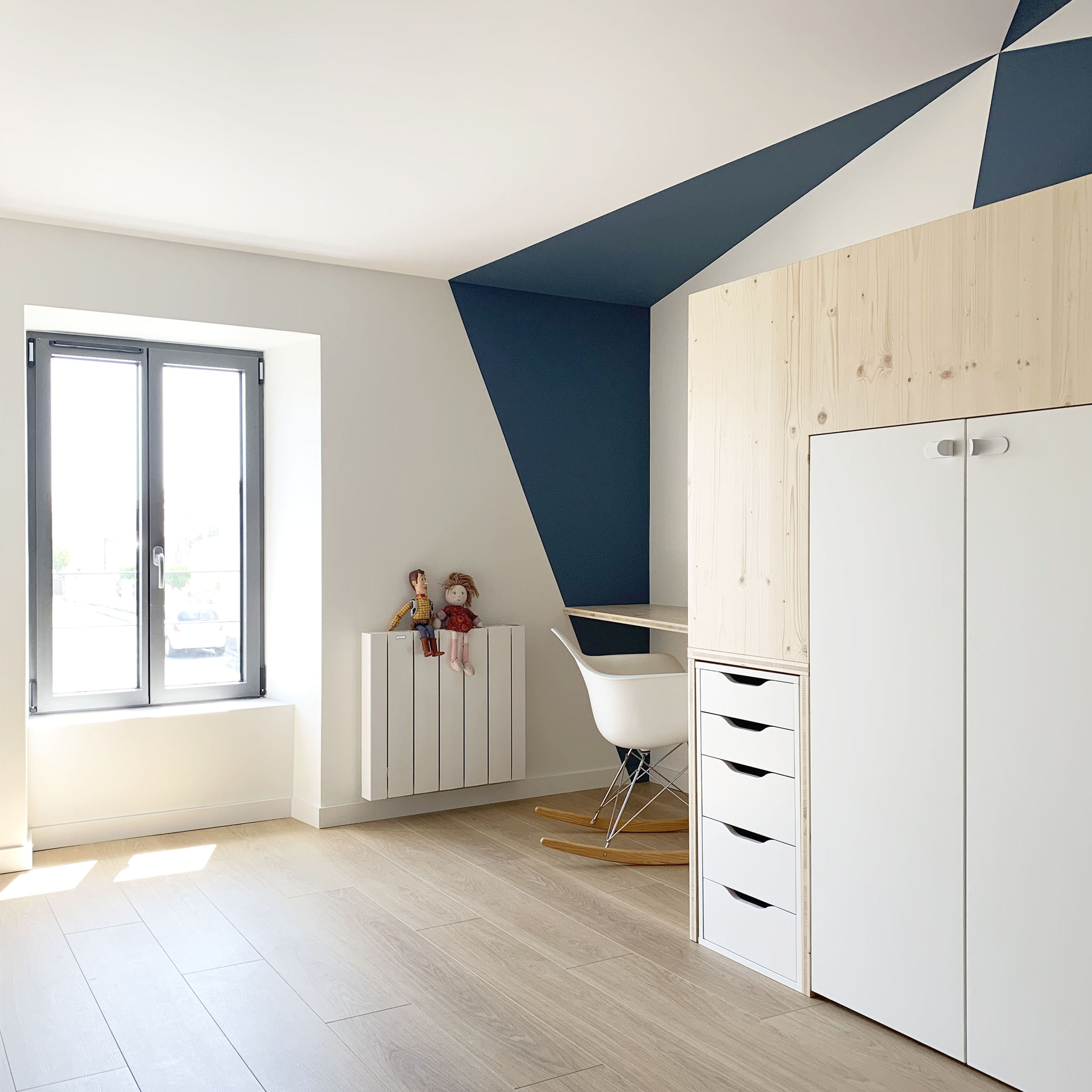 Avec son plafond rampant, la pièce bénéficie d'une belle hauteur sous plafond.